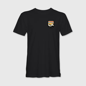 A stunning multi-coloured horizon, with a majestic mountain silhouette and pine trees adding a touch of wilderness charm. It's like carrying a slice of nature wherever you go. Made for explorers and daydreamers alike, this tee is crafted from ultra-soft cotton for maximum comfort on all your escapades. Whether you're hitting the trails or just chilling with friends, the "Amigo" tee is here to add a pop of colour to your adventures.